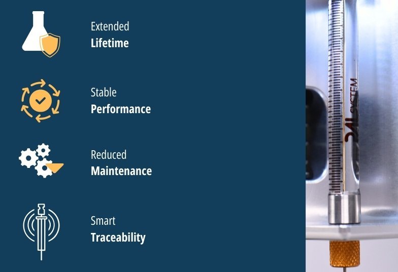 We are redefining the standard for high-throughput mass spectrometry by rethinking the critical interface between sample and instrument. The PAL System Gold Smart Syringe addresses the persistent challenges of analyte adsorption and mechanical wear by replacing the traditional stainless steel plunger with a specialized gold plunger. This engineering choice is simple yet effective, delivering a solution built on four key performance pillars: Extended Lifetime (tested to last up to 3 times longer than standard plungers), Stable Performance for consistent injection volumes, Reduced Maintenance (no hand washing required) to maximize instrument uptime, and Smart Traceability via integrated chip technology for full GLP/GMP compliance.